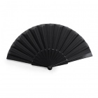 Fan featuring plastic ribs and polyester fabric. Presented in white box.