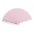 Fan featuring plastic ribs and polyester fabric. Presented in white box.