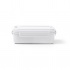 The PP lunch container features a transparent lid for quick content viewing. Its main compartment holds 1.3 liters, making it suitable for complete meals, and it includes two extra compartments to help keep foods separated and fresh. This practical, functional design is perfect for taking lunch to work, school, or on a picnic, offering organized and versatile food storage.