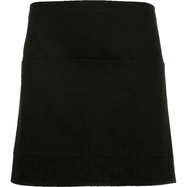 Short apron with two compartments pocket. Adjustable waistband. Measures: 71 cm x 43 cm.