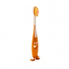 Children's toothbrush in bright colours with a soft-touch design and a suction-pad base for upright storage.