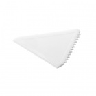 Ice scraper with a compact triangular design. One serrated edge and two flat edges.