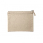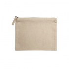 Cosmetic bag crafted from organic cotton and featuring a matching handle