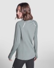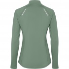 Long-sleeve women's raglan technical sweatshirt featuring a half-zip closure and reflective detailing in the collar. Built with reinforced seams, thumbhole cuffs and reflective inserts on the back. The back hem is slightly longer than the front and the garment includes insulated inner material for added warmth.