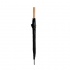 Umbrella crafted from 190T polyester, featuring a wooden handle and automatic opening. Ribs and tips in black. Velcro fastening.