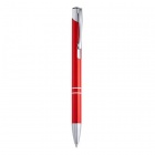 Aluminum-body ballpoint pen with push-button mechanism, anodized finish and jumbo load of blue ink.