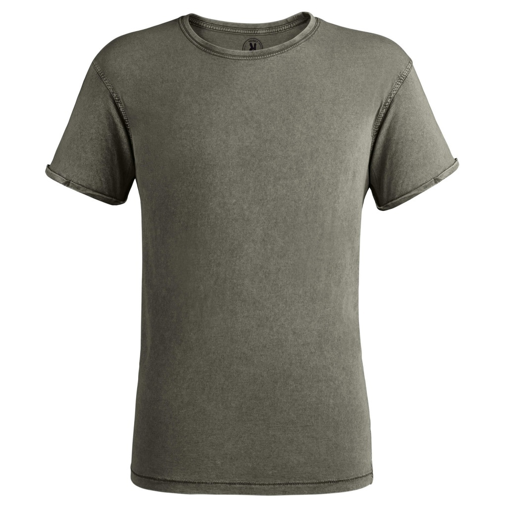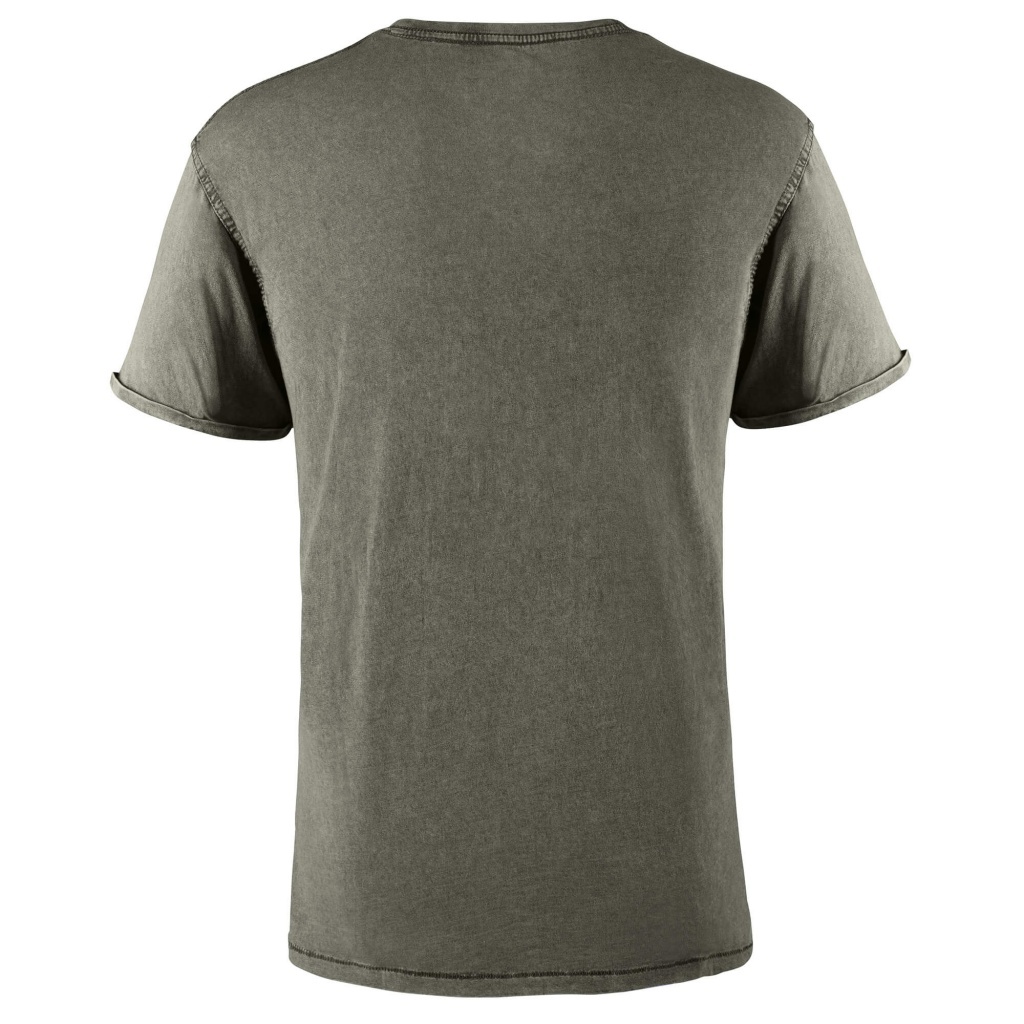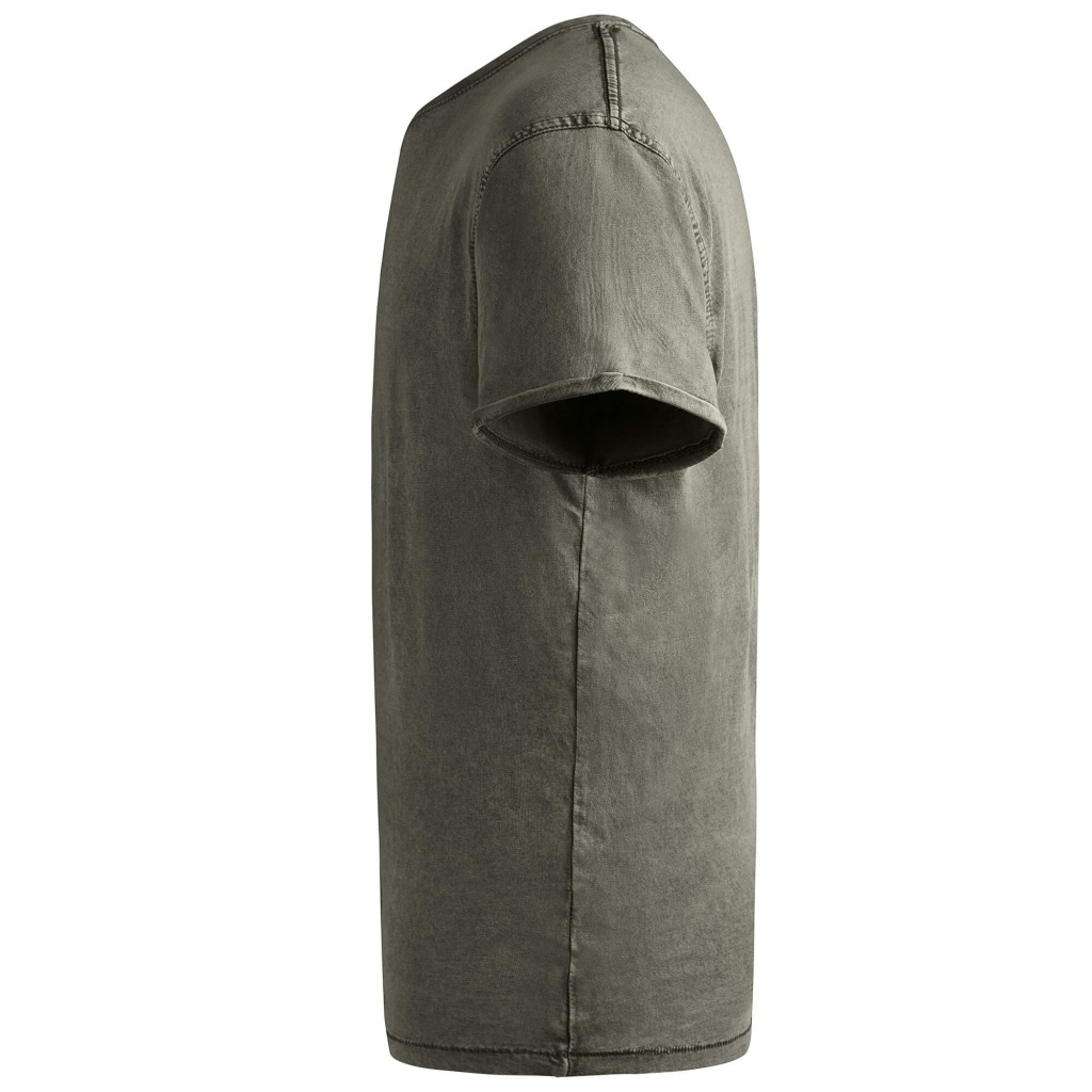 Short-sleeve t-shirt with a jeans effect. Features a 1x1 rib crew neck and reinforced cover seams from shoulder to shoulder, plus a double seam on the armholes. Sleeve openings are finished with a hem.