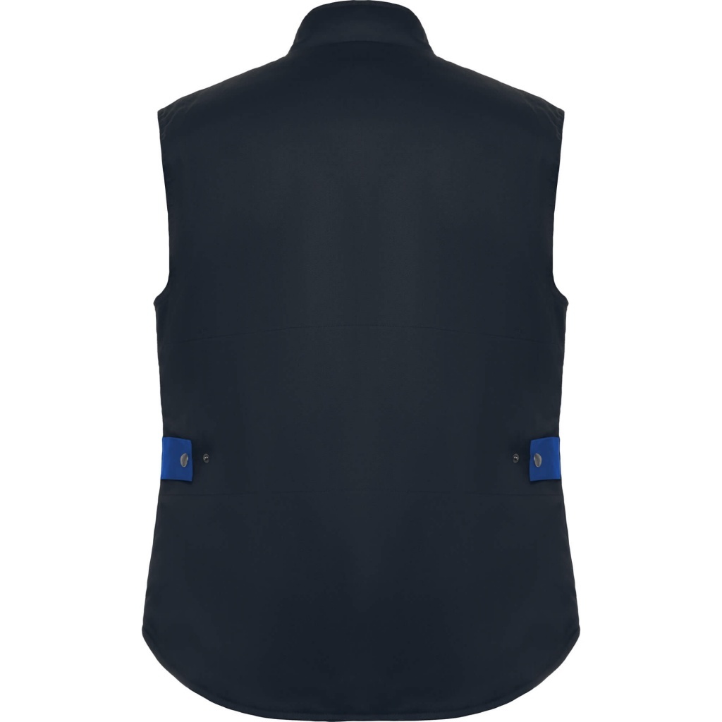 Multicolor work vest with multiple pockets and a high collar designed for practicality and comfort.