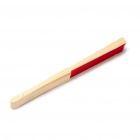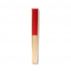 Handheld fan with a bamboo frame and polyester fabric.
