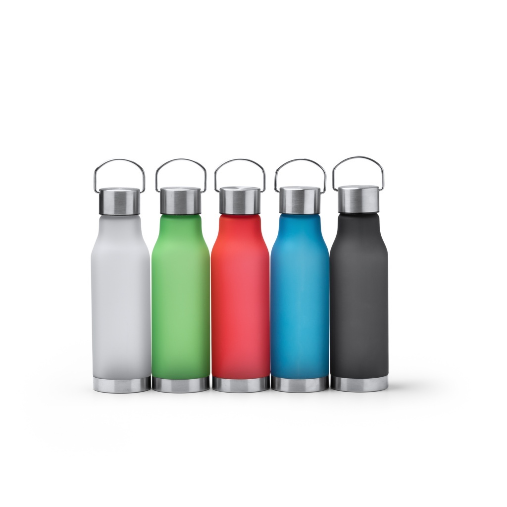 • Magox - Bottle made of RPET polyester with translucent matte finish with cap, handle and stainless steel bottom.