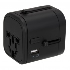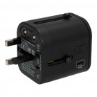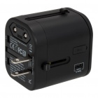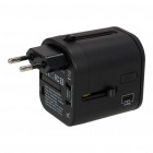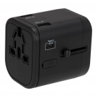 Universal travel adapter with 3 standard ports: USB (2.4A) and 1 USB Type-C port (3.0A). Double fuse.