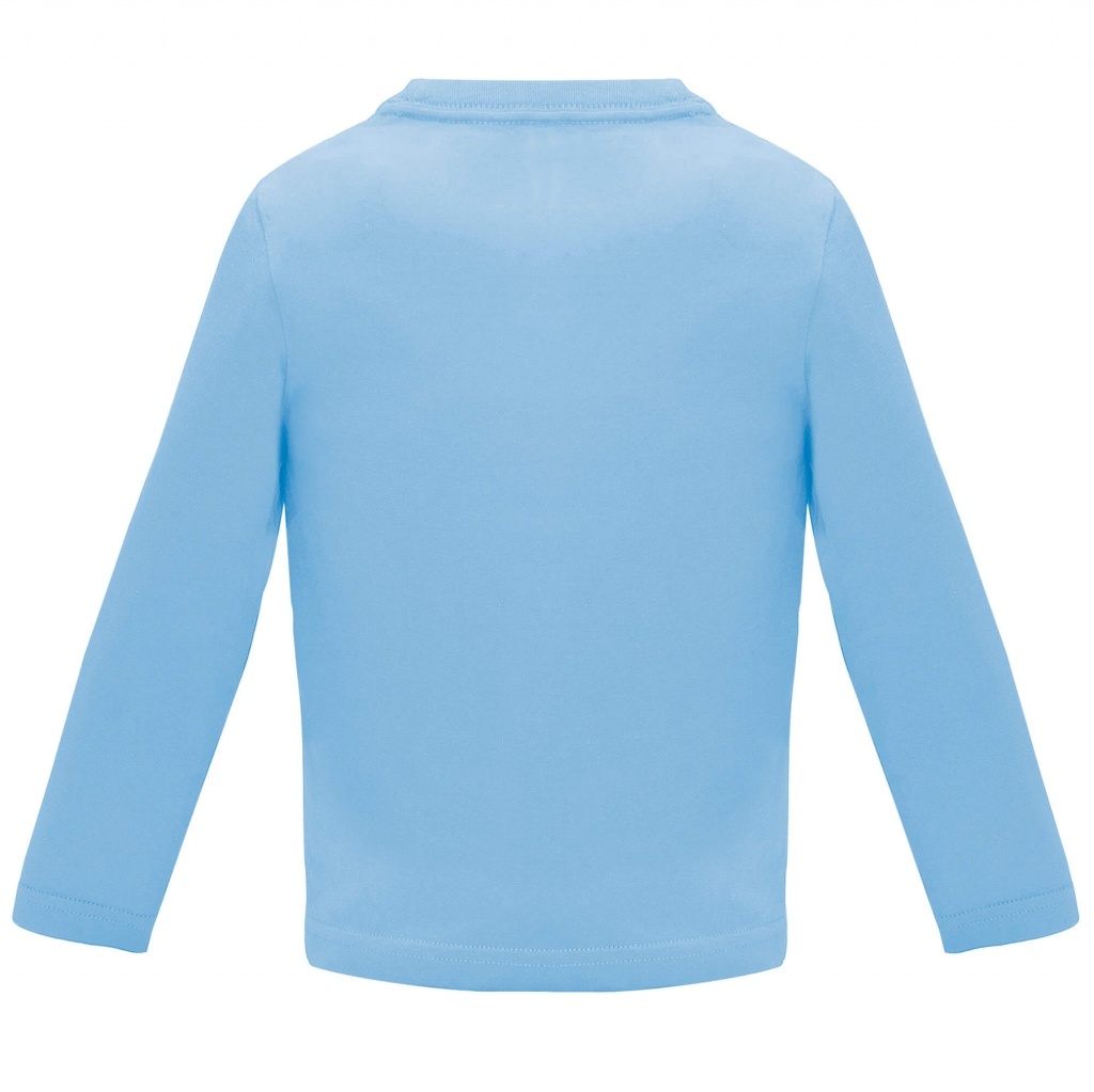 Long sleeve t-shirt, special for baby. Fine gauge fabric, compacted finishing. Crew neck and placket in shoulder with snap buttons from size 6M to 18M. Size 2 years with no placket in shoulder. Side seams. Designed to keep little ones warm while letting them wear their favourite colours.