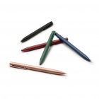 Metal-barrel pen with a matte-finish button, equipped with a jumbo refill containing blue ink.