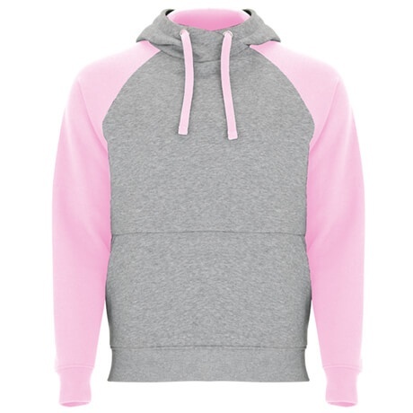 Two-tone unisex hoodie featuring a crossed-neck hood with metal eyelets and contrasting inner lining and cords. Raglan sleeves provide a contrasting look. Includes a kangaroo pocket and 1x1 rib-knit cuffs and hem with elastane for a comfortable, secure fit.