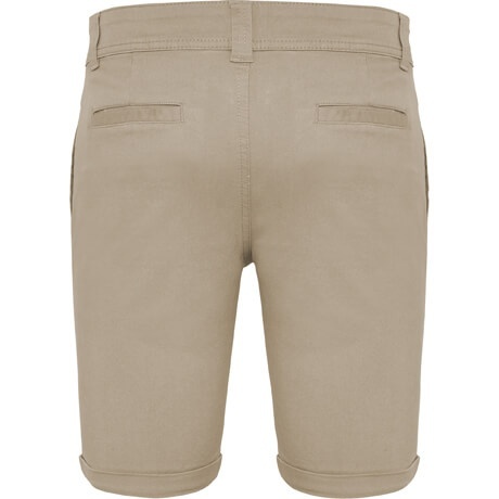 Shorts with rolled-up legs. Side and back pockets finished with piping. Durable material. Comfortable recreational or work shorts.