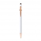 Soft-touch metal pen featuring rose gold accents. Jumbo refill with blue ink. Ideal for laser printing.
