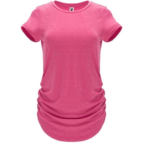 Technical multisport short-sleeve t-shirt for women in cotton-touch polyester. Crew neck made from the same fabric. Pleated elastic side panels provide a better fit to the body. Slim fit with a specially designed length.
