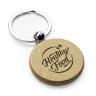 Natural wooden keyring available in two shapes, each fitted with a metal ring — perfect for personalized laser engraving and promotional branding.