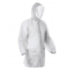 Waterproof raincoat featuring heat-sealed edges, a front fastening with 4 snap buttons,