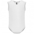 Sleeveless single-jersey bodysuit with a crew neck and 1x1 round ribbed armholes and edges. Fastened at the crotch with snap buttons and featuring a crossed shoulder opening for easy dressing.