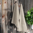 60% linen, 40% cotton terry; hanging loops 100% linen.