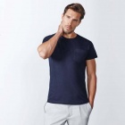 Short-sleeve T-shirt featuring a 4-layer round neck. Reinforced covered seams at the collar and shoulders, side seams and a practical front pocket ensure durability and a clean finish.