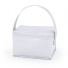 Insulated cooler bag with an aluminum thermal lining that holds up to 6 cans. Durable PVC exterior with a matching carrying handle and zip closure.