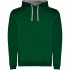 Two-tone double fabric hoodie with drawstring hem. Kangaroo style pocket. Elastic cuffs and waistband.