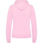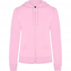 Woman´s hooded jacked with hood lined to tone. Front metal zip and kangaroo pocket. Reinforced covered seams in collar. 2x2 rib knit in cuffs and waist. Fitted cut.