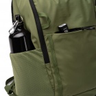 Durable backpack crafted from 280D Taslon nylon, featuring a main compartment with a double zipper closure. Inside is a padded pocket for a laptop with a screen size of up to 15 inches and an additional smaller zippered pocket. The exterior includes two front zippered pockets and two side mesh pockets with elastic bands designed to hold bottles alongside the backpack body. Padded shoulder straps and a cushioned back provide enhanced comfort, and a convenient side strap allows attachment to a stroller.