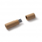 Cylindrical USB flash drive crafted from recycled cardboard.