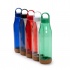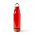 Bottle featuring an RPET fabric body and a cork base, with a lid that includes a carrying handle and snap hook.