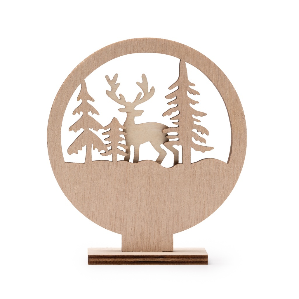 Decorative wooden Christmas ornament with a detachable base, perfect for charming holiday displays.