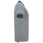 Polo Vigore z krótkim rękawem. Dekolt w jednolitym kolorze z kontrastowym, dekoracyjnym akcentem. Wewnętrzna część plisy wykończona kontrastową ozdobną taśmą i trzema guzikami. Prążkowane mankiety z kontrastowymi detalami. Boczne rozcięcia ozdobione taśmą. Tył jest nieco dłuższy niż przód.