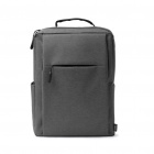 Plecak uszyty z materiału 600D RPET. Posiada dużą komorę główną z kieszenią na laptopa 15”. Wyposażony w zewnętrzną kieszeń na zamek oraz boczną kieszeń. Wyściełane uchwyty i pasek do wózka.