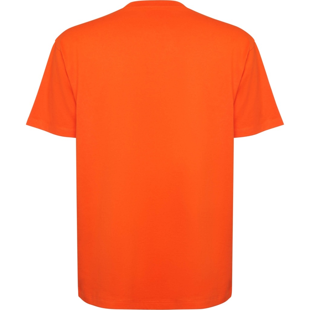 Koszulka o kroju oversize z krótkim rękawem. Okrągły dekolt wykończony ściągaczem 2x1 z przykrytymi szwami w tym samym kolorze materiału. · Boczne szwy. Szerokie podwójne przeszycia na rękawach i obszyciu.
