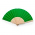 Stylowy wachlarz z drewnianą konstrukcją i tkaniną poliestrową.