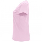 Damska koszulka z krótkim rękawem. Okrągły prążkowany dekolt 1x1. Dopasowany krój. Wzmocnione, kryte szwy przy kołnierzyku.