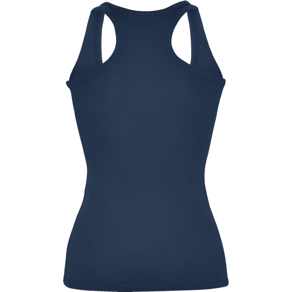 Dopasowany damski top. Dekolt i ramiona wykończone lamówką. Tył w stylu pływackim. Szwy boczne.