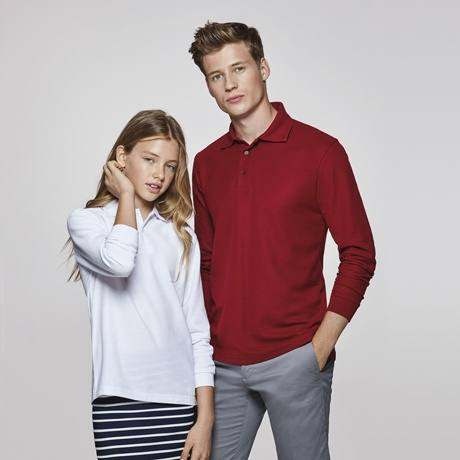 Dziecięce polo z długim rękawem. Zapięcie z dwoma guzikami. Prążkowany kołnierzyk i mankiety. Wzmocnione, kryte szwy przy kołnierzyku. Elastyczne ściągacze przy mankietach.