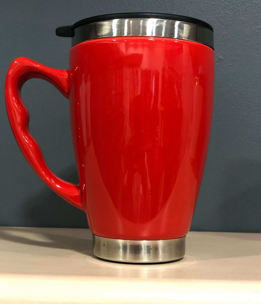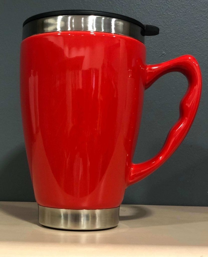 Kubek termiczny z podwójną ścianką, ceramiczno-stalowy.