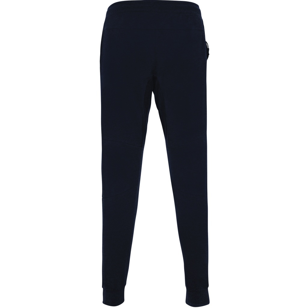Długie spodnie z wąską nogawką. Ściągacz w pasie regulowany sznurkiem. Boczne kieszenie. Dodatkowa długa kieszeń po prawej stronie z zamkiem błyskawicznym. Poprzeczne wcięcia w kolanach. Ściągacze w nogawkach.