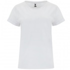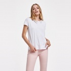 Damska koszulka z krótkim rękawem o klasycznym, okrągłym dekolcie wykonanym z tej samej dzianiny. Szwy na karku zostały wzmocnione i ukryte w kolorze materiału, a podwijane rękawki mają dodatkowe wzmocnienie w czterech punktach, co zwiększa trwałość.