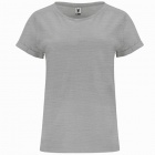 Damska koszulka z krótkim rękawem o klasycznym, okrągłym dekolcie wykonanym z tej samej dzianiny. Szwy na karku zostały wzmocnione i ukryte w kolorze materiału, a podwijane rękawki mają dodatkowe wzmocnienie w czterech punktach, co zwiększa trwałość.