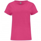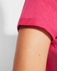Damska koszulka z krótkim rękawem o klasycznym, okrągłym dekolcie wykonanym z tej samej dzianiny. Szwy na karku zostały wzmocnione i ukryte w kolorze materiału, a podwijane rękawki mają dodatkowe wzmocnienie w czterech punktach, co zwiększa trwałość.