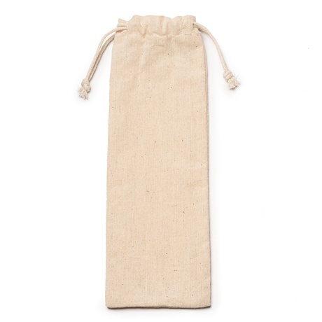 Zestaw sztućców wykonany z naturalnego bambusa, zapakowany w bawełniany woreczek z naturalnego materiału i ściągany sznurkiem. W komplecie znajduje się widelec, nóż oraz łyżka.
