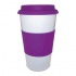 Stalowy kubek termiczny z silikonową opaską zapewnia pewny chwyt oraz wygodę użytkowania.
