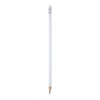 Okrągły, drewniany ołówek wyposażony w gumkę.