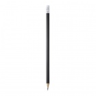 Okrągły, drewniany ołówek wyposażony w gumkę.