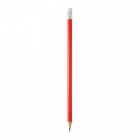 Okrągły, drewniany ołówek wyposażony w gumkę.